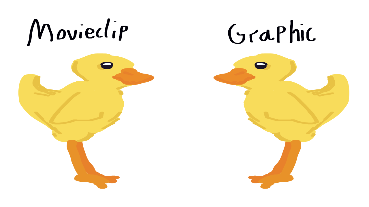 The difference between Movieclip and Graphic is Movieclip you get to edit the 3D position and View, the Vanishing point, and Accessibility, this allows different symbols of Movieclip to be moved differently. Graphic however, has looping, where it uses the choosing of different Frames to move the object no matter if it is edited, this allows changes across multiple frames since this is only one object. Movieclip needs you to click "test movie" to actually see it, while Graphic allows you to see it by just clicking the play button. In short, Movieclip and Graphic have their own differences that allows people to edit their own animation in different ways.